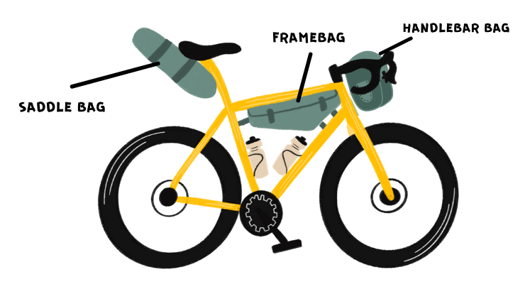Le bikepacking est la forme la plus aboutie du voyage sportif et minimaliste. Le chargement est très limité, ce qui pousse le cycliste à ne prendre que l’essentiel. Ses sacoches sont pensées pour être aérodynamiques afin de ne pas freiner le rythme et minimiser l’effort. Les sacoches se placent généralement derrière la selle (saddlebag), dans le cadre (framebag) et sur le guidon (handlebarbag). Certains ajoutent des petites sacoches sur les jantes avant pour gagner quelques litres.